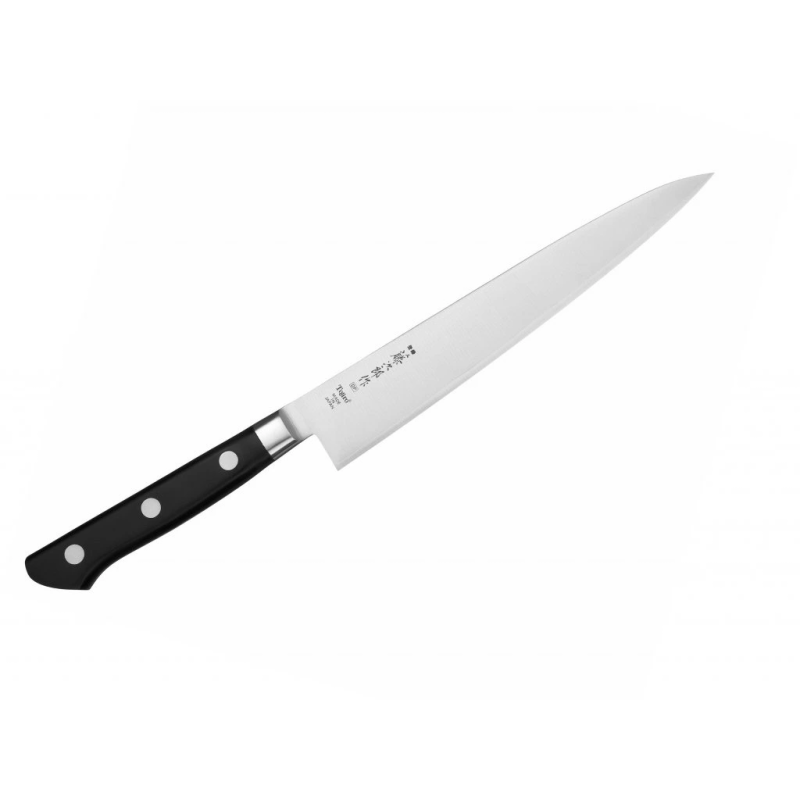 „Tojiro Western DP“ - europietiško tipo peiliai, skirti naudoti namuose ir restoranuose. Geležtė gaminama iš 3 sluoksnių plieno (Japonijoje ši technologija vadinama San-Mai). Vidinis sluoksnis iš japoniško plieno VG10 (60–61 HRC), o kiti du sluoksniai yra minkštesnio plieno (13 Chrome Stainless Steel). Dėl tokios konstrukcijos tuo pačiu metu mes turime tvirtą ir lankstų peilį. „Tojiro Western DP“ peiliai taip pat pasižymi dideliu atsparumu korozijai , ilgai išlaiko aštrumą. Geležtės nuolydžiai yra simetriški ir pakankamai nedideli (~ 15 laipsnių pusei, viso 30 laipsnių), todėl gaminius pjaustyti galima lengvai ir greitai. Ergonomiška rankena, pagaminta iš armuoto medienos laminato, yra labai patvari ir tvirta.